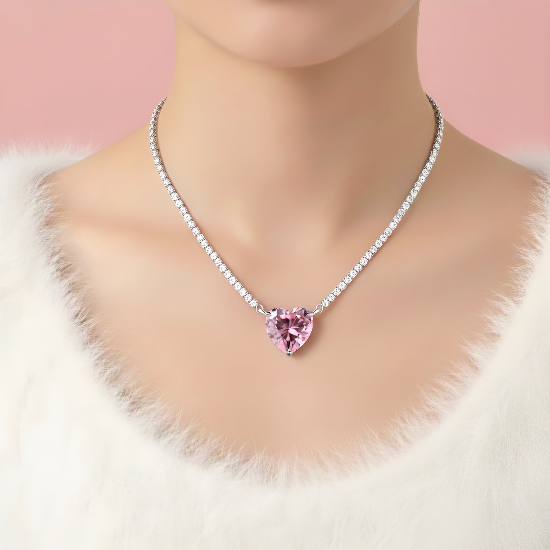 Our "Heart Of Love" (pink) pendant features a luxurious 8-carat pink center diamond simulant, whether you are presenting it as a cherished gift or adding it to your own collection of fine jewelry, it's the most superior choice of all jewels! Its eternal luster and gleam will make anyone, including you, fall in love at first sight.