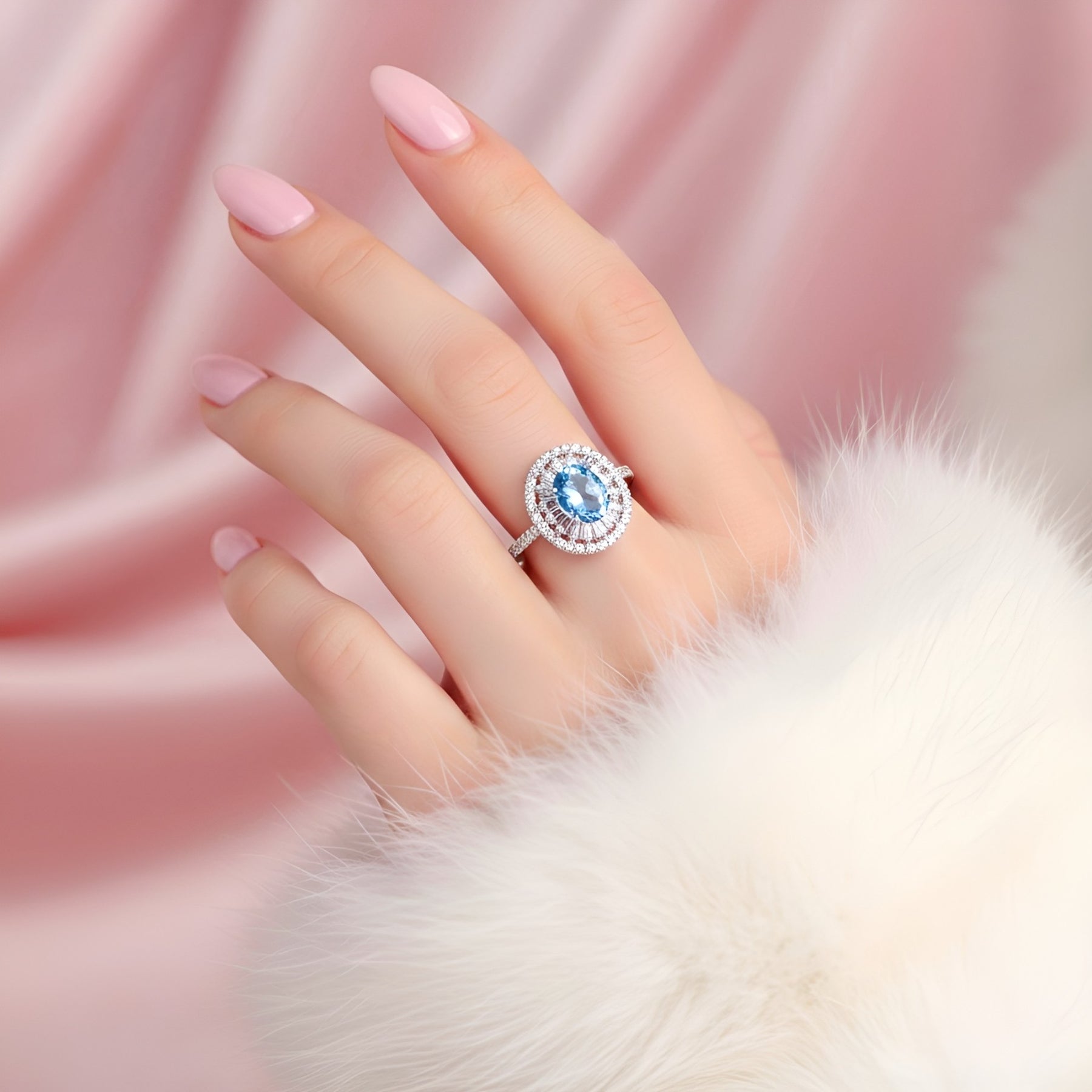 Our precious "Ocean Diamond" ring is one of the most charismatic yet enchanting ring you will ever find! Its center blue diamond resembles the ocean, and will certainly seduce you at one glance. Every part of this ring reflects their appeal to perfection.