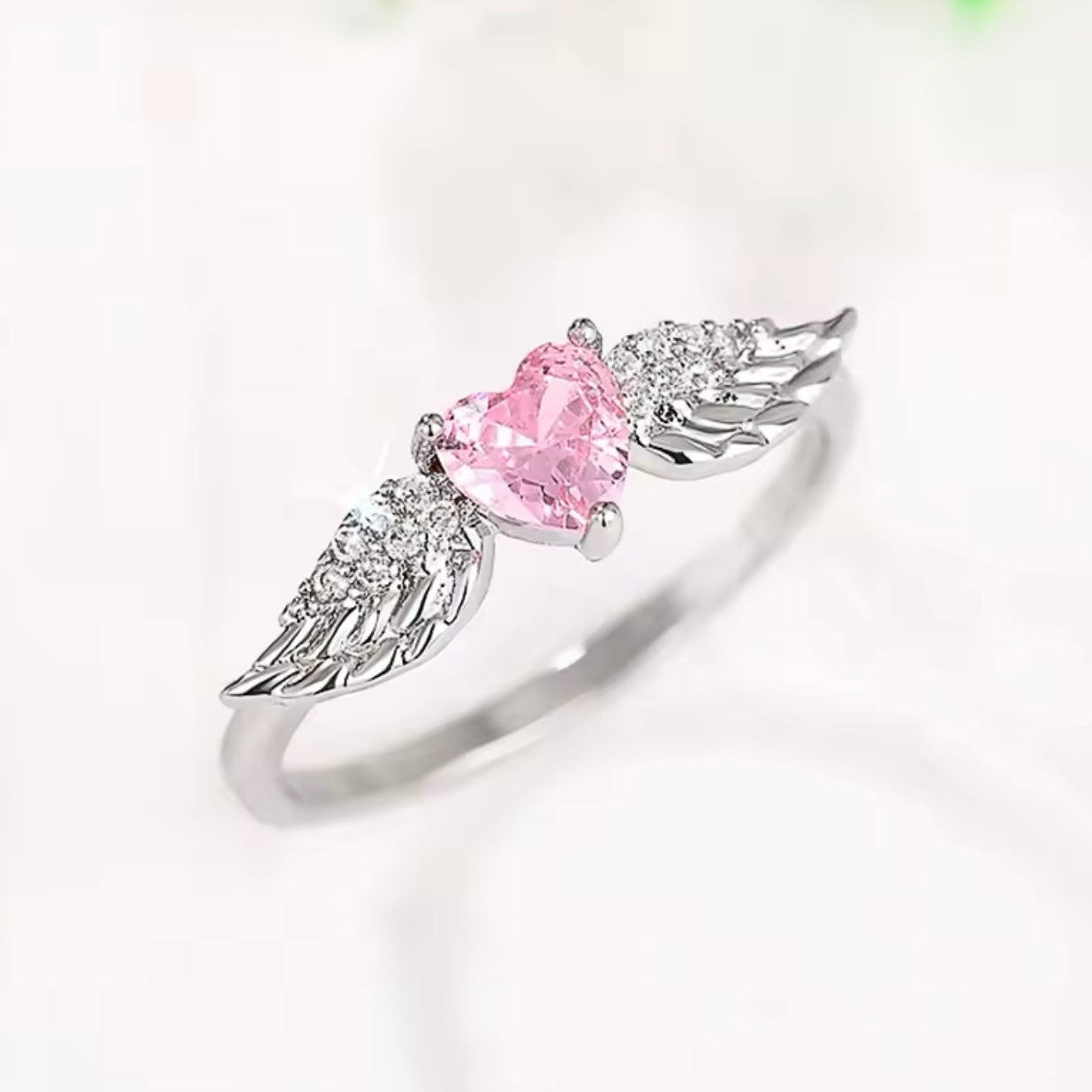 Unveil the romance with our "Cupid’s Kiss" ring, beautifully made from sterling silver 925, this stunning ring features a dazzling and delicate pink heart, symbolizing love and tenderness, adorned with intricately designed wings on either side.