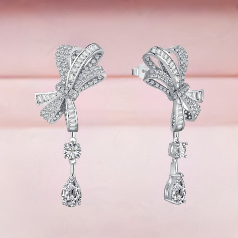 "The Bow Reign" earrings makes you step into the world of refined elegance with its extravagant and captivating bow shapes, a luxurious adornment that seamlessly blends sophistication and whimsical charm. Made with meticulous attention to detail, each earring is a work of art in high-quality materials.
